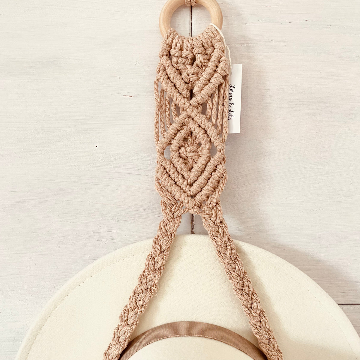 Simple, practical, and beautiful. These handcrafted hat hangers are designed to keep your favourite hats and caps on display and off the floor—adding soft texture and function to your walls.