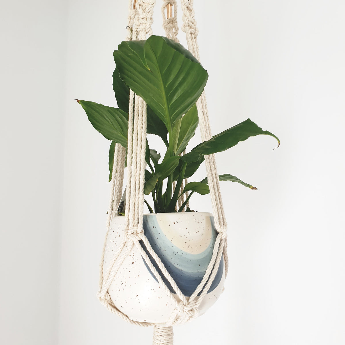 I live by the coast in Western Australia with my husband and our three daughters, creating macramé from my home studio—usually with the sea breeze drifting in and a cup of tea nearby.